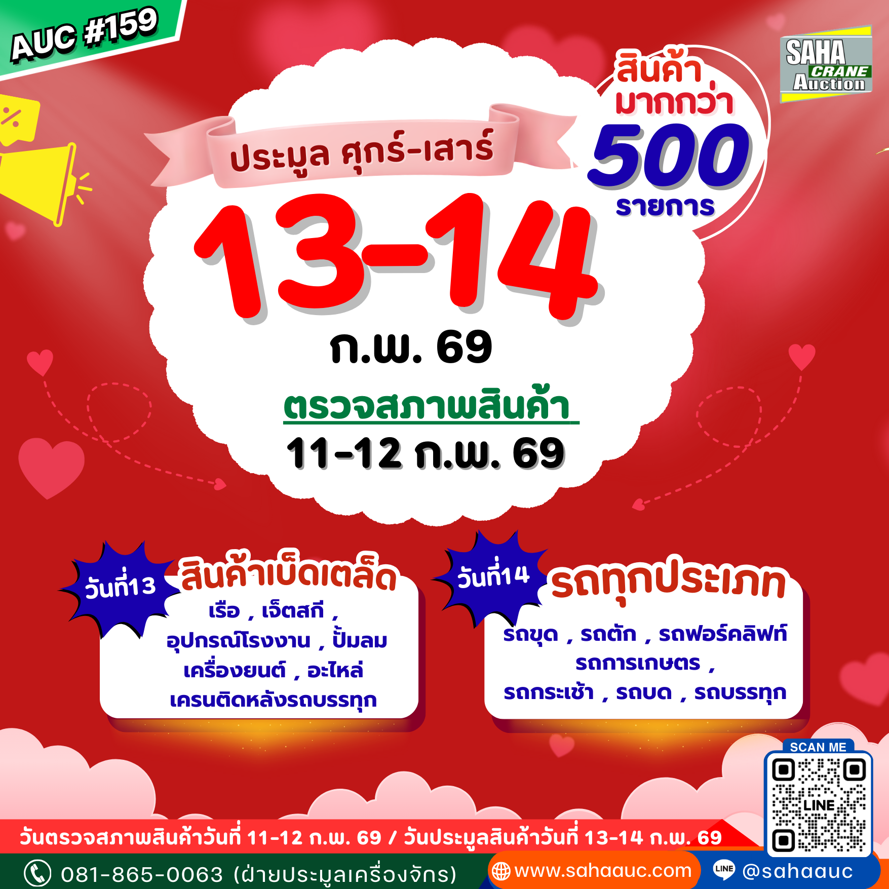 | สินค้าสำหรับประมูล ( 489 ) | 13-14 กุมภาพันธ์ 2569 | 11-14 กุมภาพันธ์ 2569 | 11-12 กุมภาพันธ์ 2569 | ดูรายการสินค้า |