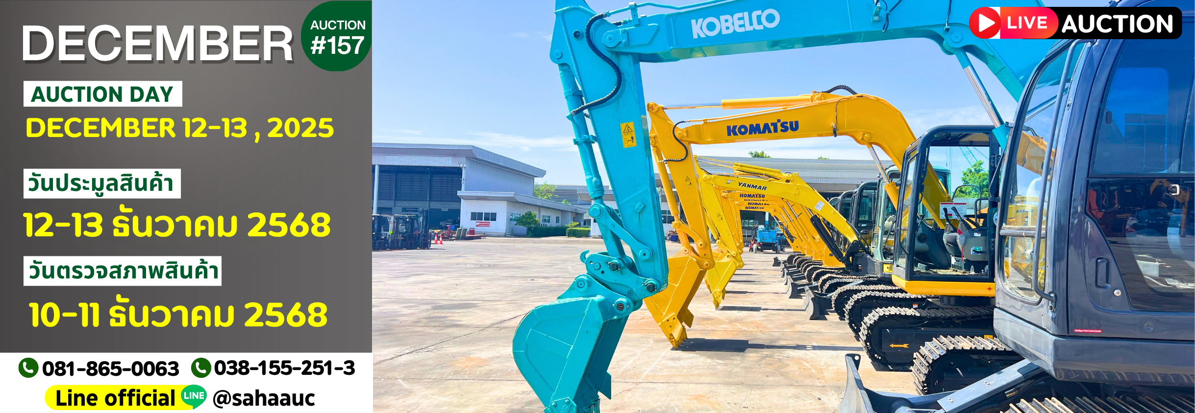 | สินค้าสำหรับประมูล ( 528 ) | 12-13 ธันวาคม 2568 | 10-13 ธันวาคม 2568 | 10-11 ธันวาคม 2568 | ดูรายการสินค้า |
